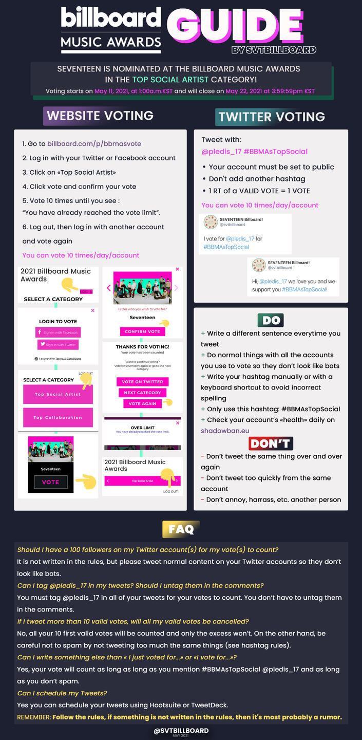Voting rules: https://billboardmusicawards.com/voting-rules/We do not know how how the vote counting will proceed. We don’t know about the technology used to filter the votes out. We just know that we need to be careful.
